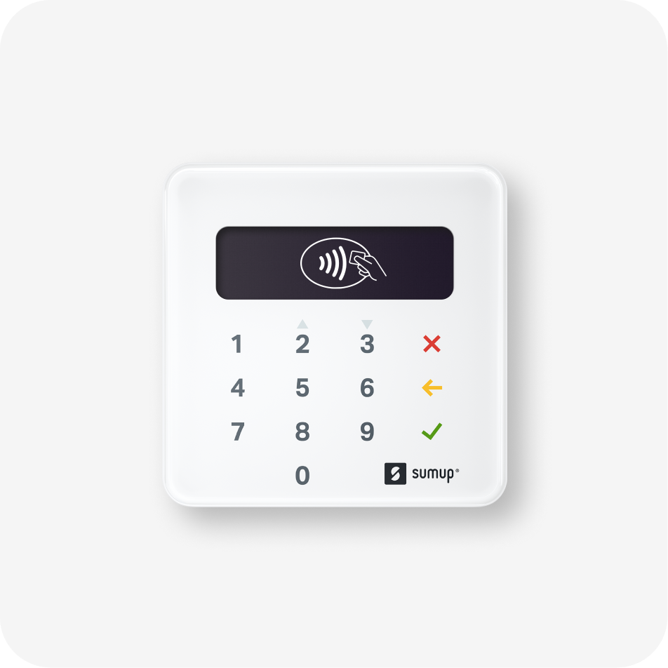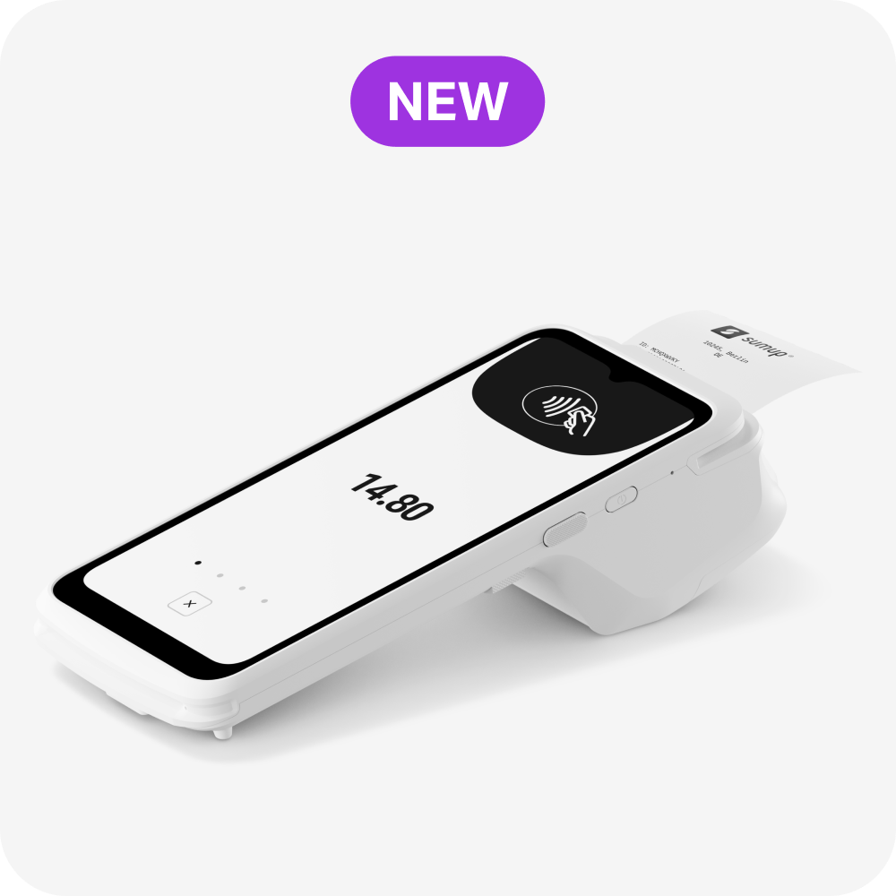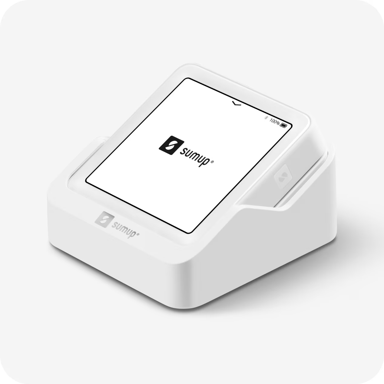 A premium handheld card reader with essential POS features and a built-in printer. Standalone with touchscreen access to SumUp tools. Dual 4G/WiFi connectivity and a long-lasting battery.